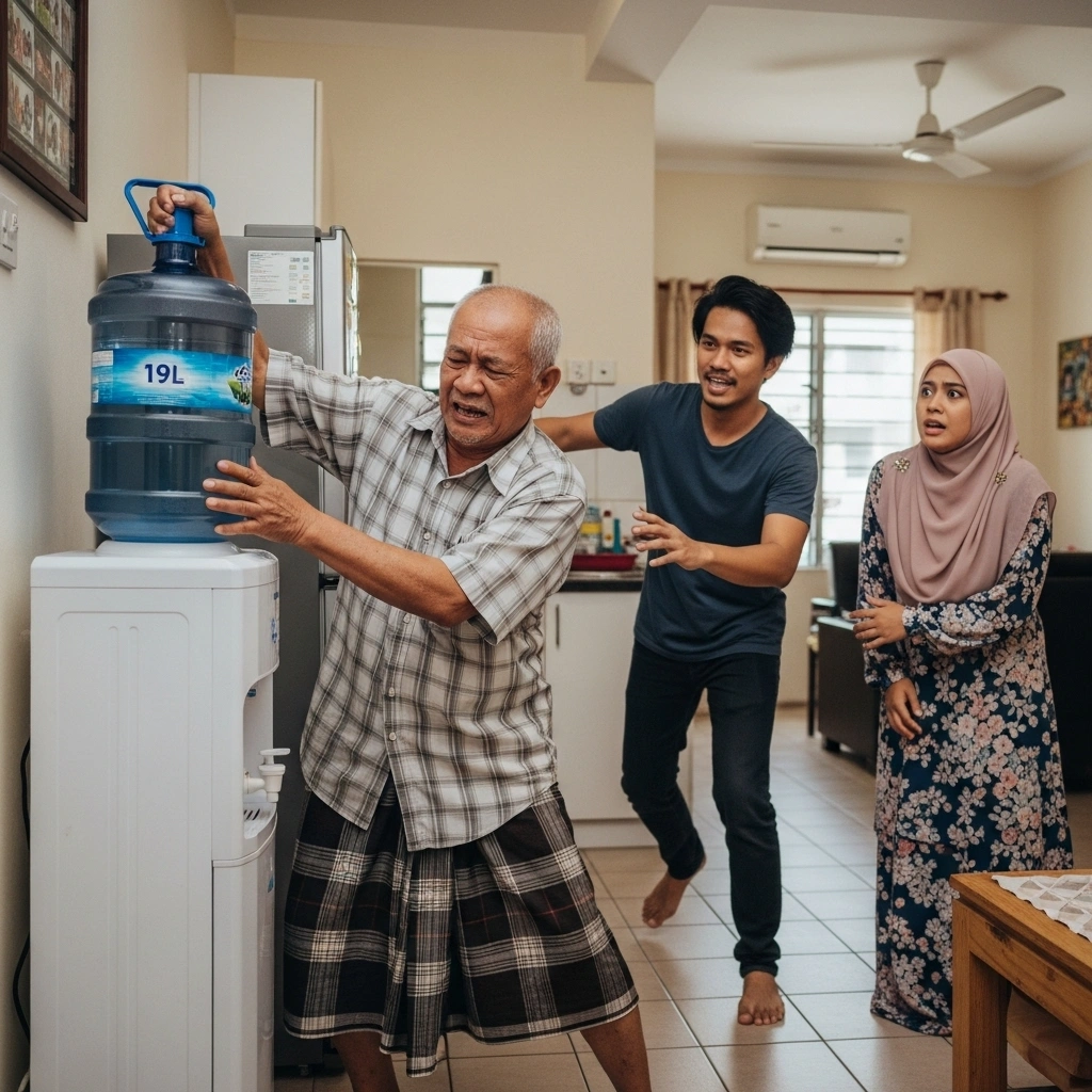 Warga emas berisiko jatuh bila cuba tuang air dari botol berat kes macam ni makin banyak.